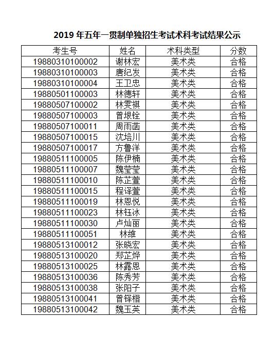 根据《关于做好2019年高职院校五年一贯制单独招生考试全省统考考务工作的通知》(粤招办普[2019]22号)的要求,4月14日我院组织报考音乐教育、美术教育、体育专业考生参加术科考试。下列考生获得术科考试合格资格,现予以公示(名单详见附件)。公示时间为2019年4月16日上午8:30-4月22日17:30,如有异议,请电话或书面向星空彩票了单双四肖招生办公室反映。