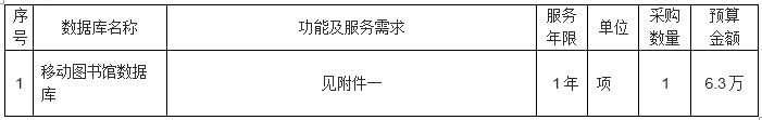项目需求:购买移动图书馆数据库服务一年,详见附件。