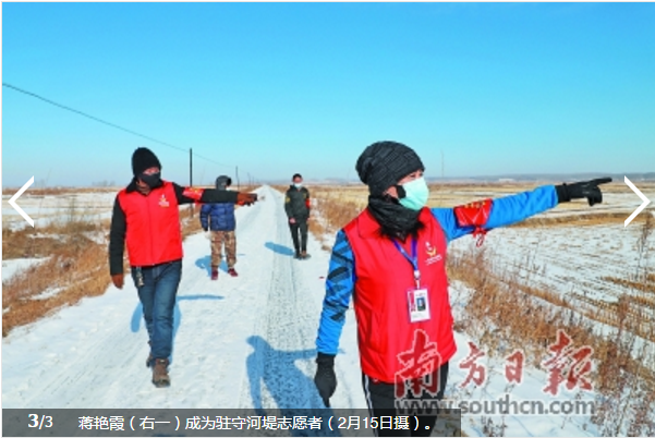河堤上风大,气温低至零下十几摄氏度,每天站岗近10个小时,蒋艳霞的嗓子喊得沙哑,嘴唇冻得干裂,双腿变得肿胀。“有一分热就得发一分光,这点苦不算啥。”蒋艳霞说。