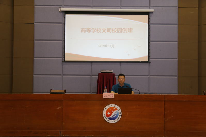为提升创文水平和质量,创建文明校园,7月13日下午,学院特邀请汕头市创文办资料组组长庄泽龙为学院干部进行创建文明校园工作培训。培训采用理论与实践培训相结合的模式。
