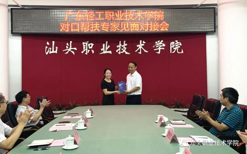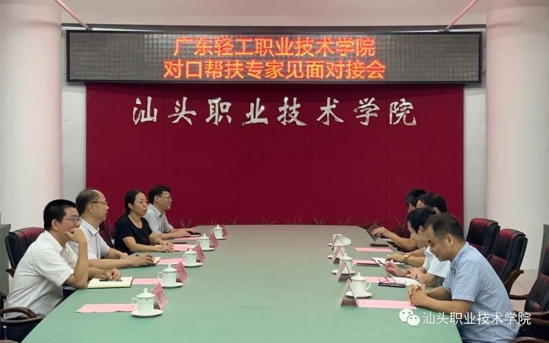 根据广轻工及汕职院结对帮扶工作总体安排,9月18日上午,广轻工廖俊杰副校长带领该校的人事处处长石朝阳、招标采购中心主任李国良、继续教育学院院长陆英杰、帮扶联络人贺爱东教授等专家一行到访学院,开展新学期首场帮扶指导工作。学院在图书信息大楼6楼会议室举办帮扶专家见面对接会暨欢迎仪式。学院党委书记王小辉,院长吴萍,党委副书记方小铁,副院长陈庭照、黄汉文,以及学院办公室、计划财务处、教学督导室、人事处、教务处、成人教育部等有关部门的负责人与会。