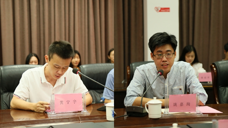 接着,人事处蔡铄副处长逐一介绍了我院今年新引进的全日制博(硕)士。随后新入职的高层次人才代表黄宁宇博士、姚嘉洵老师分别发言。黄宁宇博士表示很高兴能为家乡的教育事业贡献一份自己的力量,感谢学院提供了一个展现自我、实现人生抱负的机会与舞台,学院、学系领导的关心与指导有助于新入职教师尽快适应新的工作环境并感受到学院大家庭的温暖和团结。姚嘉洵老师认为教师的工作任重而道远,要脚踏实地、从实际出发;要规范自我,树立立德树人的教育观念;要做好本职工作,努力培养和引导学生;要大力弘扬科研精神,为学院贡献更多的科研课题和学术成果。