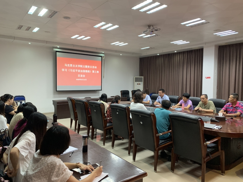 8月13日上午,马克思主义学院在金园校区一楼会议室举行主题党日活动,活动主题为《习近平谈治国理政》第三卷学习交流会暨创文工作推进会。会议由马克思主义学院党支部宣传委员、副院长陈辉林同志主持。