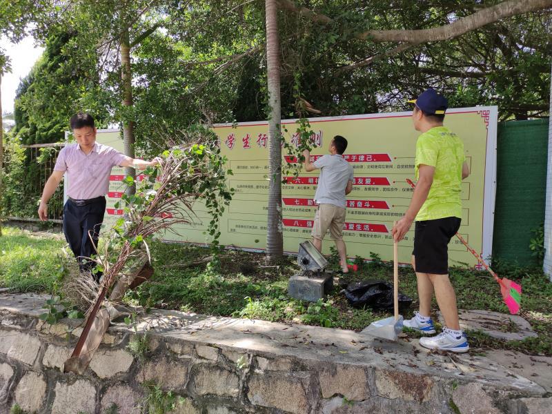 8月9日,根据《关于组织开展环境卫生整治义务劳动的通知》(汕职院创文办〔2020〕10号)要求,技能实训中心组织部门人员到院本部开展创文卫生整理活动,万松鑫主任亲自带领部门全体领导干部和党员等到技能实训中心所属责任区域进行卫生劳动,对学院侧门及周边环境区域绿化带、步道、第三实训楼周边环境等进行清洁,清除卫生死角、清理区域内的枯枝败叶、杂草树籽、纸屑和建筑废料等杂物,对墙上污渍和泥沙等进行清理。经过大家的共同努力,学院北门初步展现了干净整洁有序的环境面貌,营造了良好的校园入口环境,助力学院创文活动。
