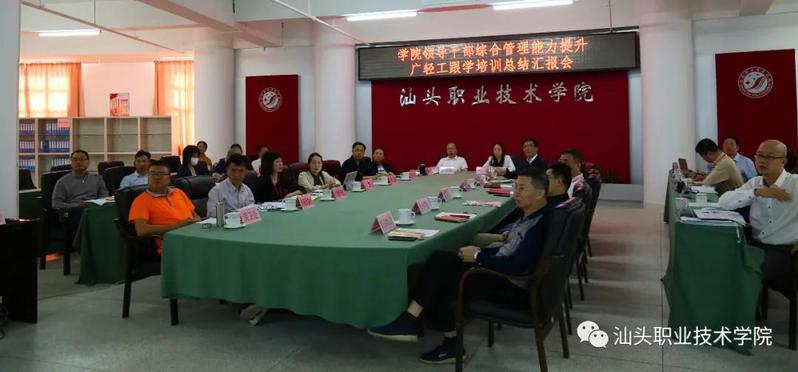为有效地学习广东轻工职业技术学院的先进经验,我院先后两次组织各部门负责人以脱产挂职的方式,参与广东轻工职业技术学院对口部门日常工作。为深入了解跟学情况、互相学习、互相促进,11月6日学院在院本部图书信息大楼六楼会议室(一)召开学院领导干部综合管理能力提升广轻工跟学培训总结汇报会,学院党政领导班子及学院所有内设机构主要负责同志参加会议,会议由学院党委副书记、纪委书记黄少明主持。