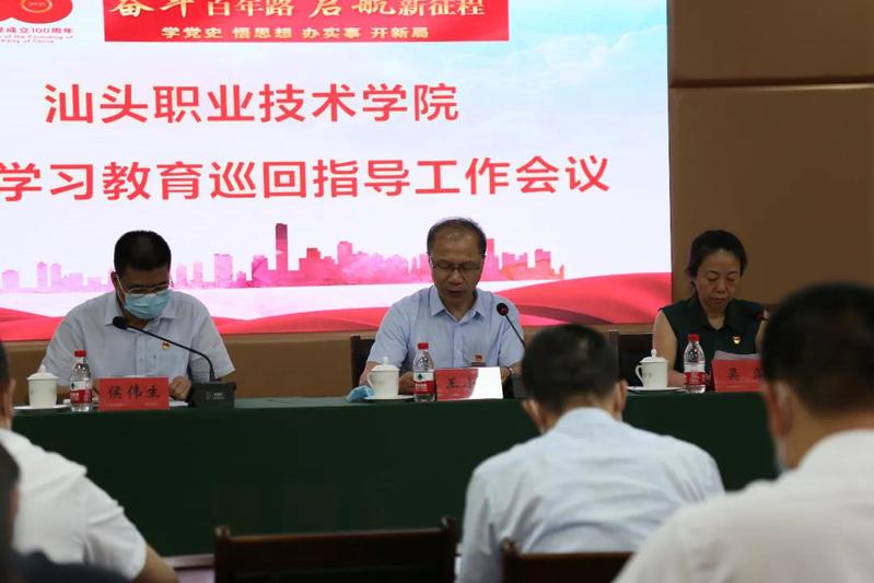 王小辉同志代表学院作表态发言,他表示,市委党史学习教育第八巡回指导组来我院指导,对我院更好地推动党史学习教育向纵深发展,具有非常重要的指导督促作用。学院将把接受巡回指导作为全面检验党史学习教育成效、强力推动各项教育事业发展的契机,进一步提高政治站位,强化责任担当,坚决态度,严实作风,有力举措,推动学院党史学习教育向纵深发展。压紧压实各级党组织主体责任,进一步开启督查考核,把党史学习教育融入日常、抓在经常,确保党史学习教育有声有色开展、有力有序推进。突出以学促干,把开展党史学习教育与常态化疫情防控结合起来,与推动本科职业教育和省级双高院校结合起来,以优异的成绩为庆祝中国共产党成立100周年献礼。