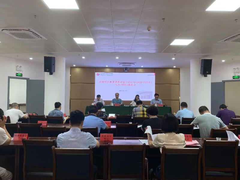6月17日下午,学院在院本部图书信息大楼6楼会议室召开承接职业教育提质培优行动计划(2020-2023年)任务(项目)推进会,党委书记王小辉,党委副书记、院长吴萍,副院长陈庭照出席会议,副院长黄汉文主持会议。