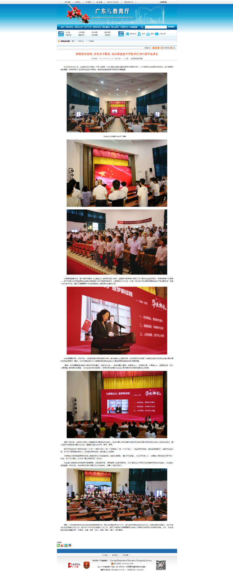 广东省教育厅2021-07-05刊登我院简讯《纵使星河流转 ,青春永不散场 星空彩票了单双四肖举行2021届毕业典礼》