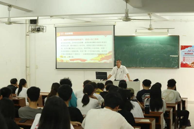 9月29日下午,机电工程系党总支书记陈明忠在第二实训楼307为机电工程系2020级学生开讲了秋季学期“思政第一课”。