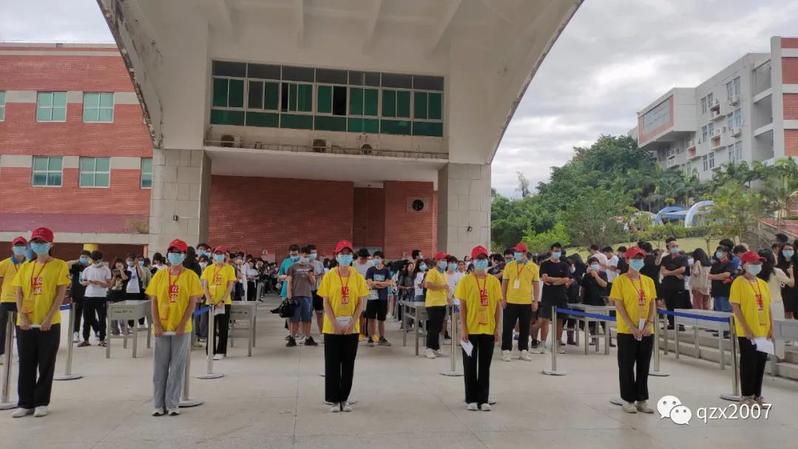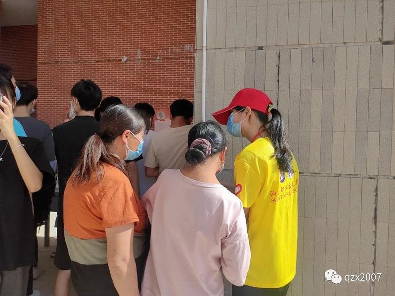 在“小黄人”的组织沟通下,检测人员有序排起了队伍,每一组队伍前列,均有“小黄人”引导,扫码登记出现问题时及时解决,队伍轮候有空缺时及时快速补上,在等候区、核对区、登记区、检查区,整个检测过程人流流动迅速有序。