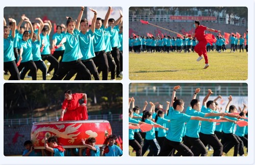 本届运动会开幕式的团体操表演由李洪坤老师任总编导,编排三个篇章:《青春有你YES!OK!》、《中国功夫》和《我和我的祖国》。