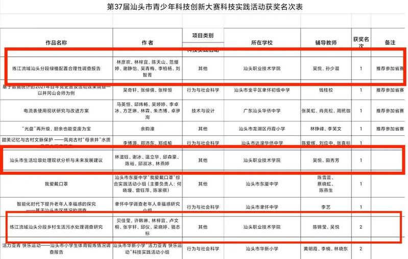 在市科协和团市委等5部门公布的第37届汕头市青少年科技创新大赛现场展评活动结果中,我院2份作品荣获一等奖,1份作品荣获二等奖。