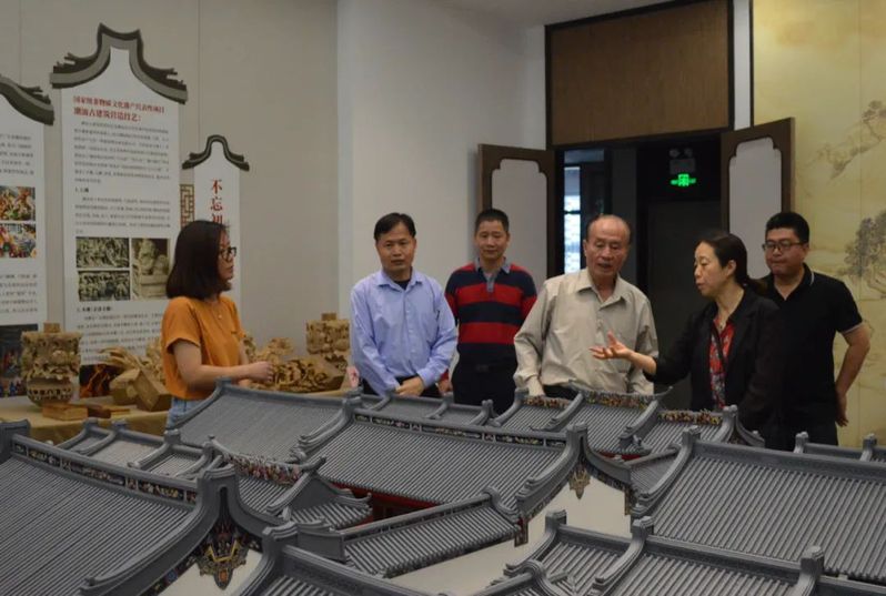 调研中,吴院长一行参观了汕头东元东园展览馆和广东纪传英古建筑营造有限公司,现场了解了金漆木雕、嵌瓷、泥塑、彩画技艺等潮汕古建筑营造技艺。