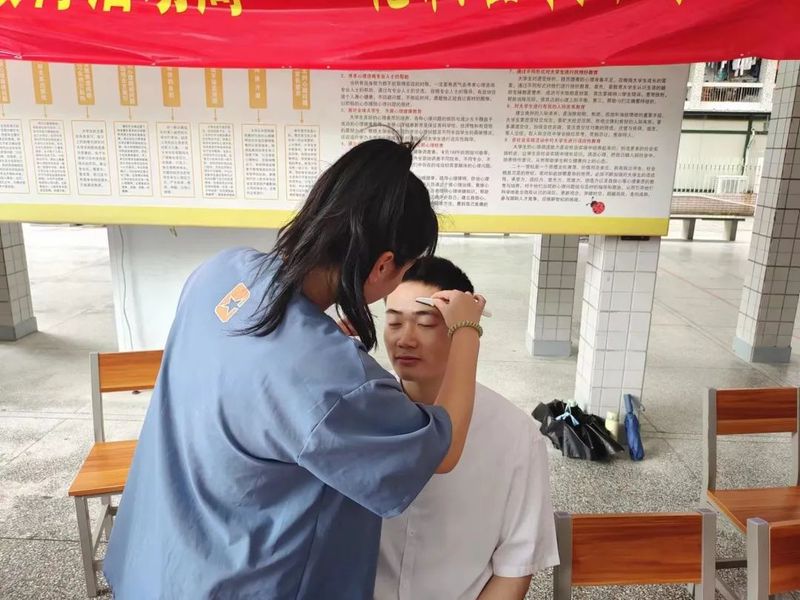 化妆品技术专业成立了一支由16位同学组成的服务队,在李丽和陈键侨两位老师的悉心指导下,于2022年5月12日在金园校区风雨操场成功举办了以“为学院师生修眉画眉”为主题的化妆品技术专业技能服务活动。