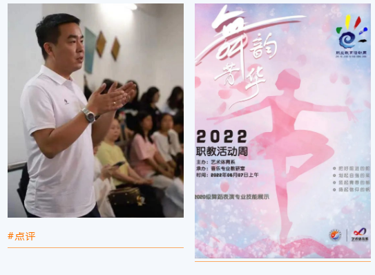 5月7日上午,艺术体育系“舞韵芳华·2020级舞蹈表演专业技能课堂展示”在舞蹈实训一室开展。艺术体育系党总支副书记詹剑涛,汕头市歌舞团曾慧攀团长,汕头市童梦文化传播公司吴裕耀以及音乐专业全体老师参加了本次活动。通过观看展示,校外实训基地负责人、市歌舞团曾团长肯定了我系舞蹈表演在课堂教学与职业教育相结合方面所取得的成绩,鼓励大家保持练习的热情,苦练本领,并寄语2020舞蹈表演专业的学生,再接再厉,创出佳绩。
