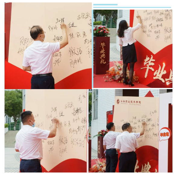 学院党委书记王小辉,党委副书记、院长吴萍,党委副书记、纪委书记黄少明,副院长陈庭照、林育青、黄汉文出席典礼,各职能部门、教学部门负责人、各学系教师代表、辅导员代表,校友代表、毕业生代表及在校生代表参加毕业典礼。典礼由学院党委副书记方小铁主持。