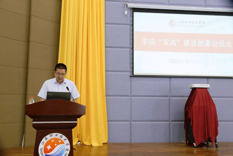 吴萍院长作题为《新起点,新高度,共创学院新辉煌 ——以双高建设推动学院高质量发展》的“双高”建设部署动员讲话。她强调,这是学院发展史上的重大里程碑!这是全校教职工20年的积累、近年长足进步的标志性成果!这更是新的起点、新的高度、新的目标、新的挑战!