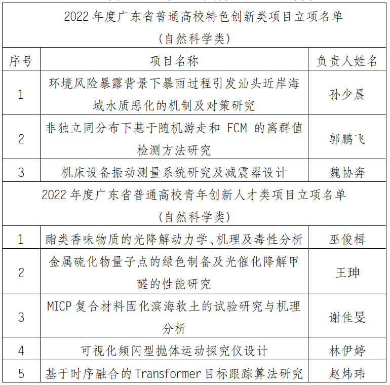 学院获广东省2022年度普通高校认定类科研项目立项名单