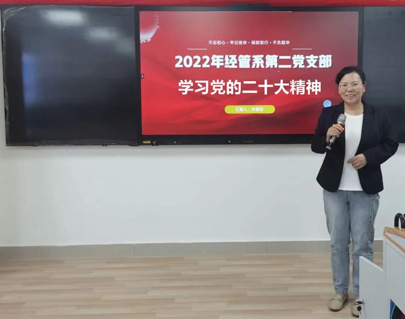 11月18日,经管系第二党支部举办支部大会,支部书记许慧珍带领全体党支部成员学习党的二十大报告,贯彻落实党的二十大精神。她强调,支部党员要提高政治站位看待教育,着眼战略全局谋划教育,坚持以人民为中心发展教育,把握特点规律推进教育,筑牢安全防线守护教育,奋力开创新时代广东教育事业新局面。