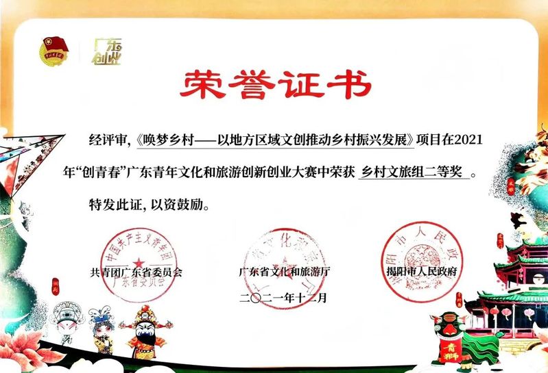 2019年10月,杨海杰校友的项目成功转型成立了“唤梦投资发展(广东)有限公司”,该公司致力于发展乡土文化传承的项目,以地方区域文化传承,因地制宜,以墙绘壁画、陈列陈设等美化形式打造特色化乡村旅游,带领村民共同创业致富,推动乡村振兴发展。2021 年 12 月底公司在“新四板”上挂牌展示,企业代码:251718。