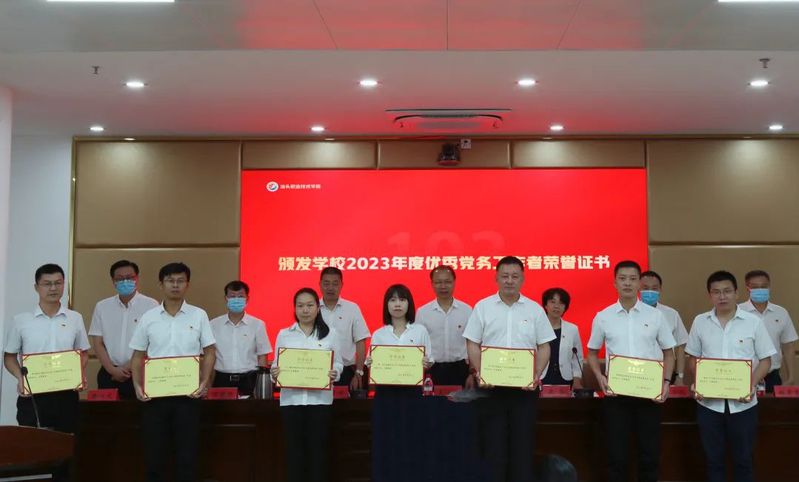 学校领导分别为市直教育系统优秀共产党员、优秀党务工作者、先进基层党组织代表及学校2023年度优秀党员、优秀党务工作者、先进基层党组织代表颁发证书。