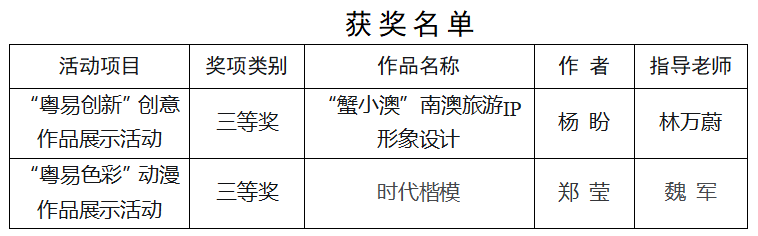 近日,广东省教育厅公布第八届广东高校网络媒体展示节活动评审结果,我校师生作品获得三等奖两项。