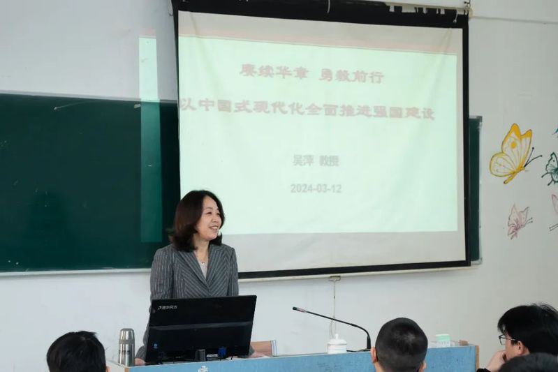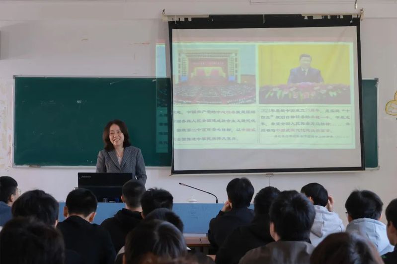 3月12日上午,吴萍以《赓续华章 勇毅前行——以中国式现代化全面推进强国建设》为题,在校本部教学二区404室为先进制造学院2023级新能源汽车技术专业的同学们讲授“思政第一课”。从中国式现代化的理论内涵、中国式现代化面临的机遇挑战与应对之道以及中国式现代化进程中的青年使命三个角度,全面阐述了以中国式现代化全面推进强国建设的深刻内涵,强调要区分中国式现代化与西方现代化的显著不同,并结合具体工作实践和专业知识进行授课。她勉励同学们要在自己的专业上认真耕耘,做好知识储备,为地区发展及行业发展作出自己的贡献;要做中国式现代化进程中的新时代新青年,不负韶华,树立远大理想,做新时代的实干者,勇毅前行!