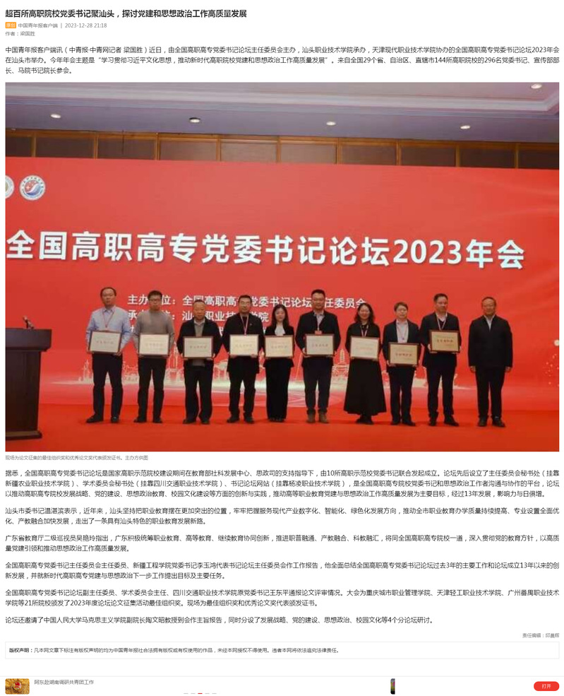 超百所高职院校党委书记聚汕头,探讨党建和思想政治工作高质量发展