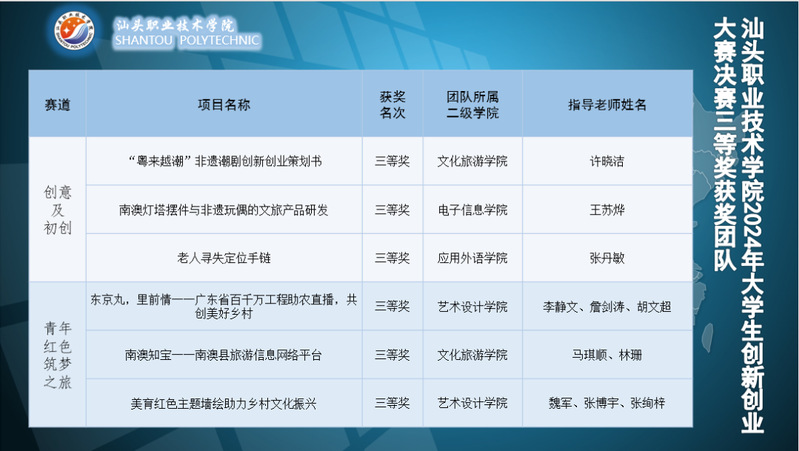 历经三个多小时的激烈角逐,创意赛道和青年红色筑梦之旅赛道各评选出一等奖1名、二等奖2名、三等奖3名,以及优秀指导老师奖2名和项目优秀奖若干。