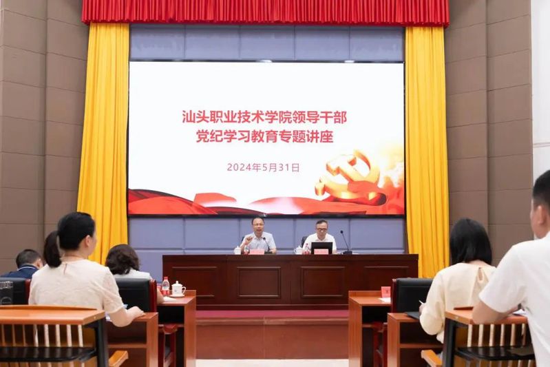 为深入学习贯彻习近平总书记关于党纪学习教育的重要讲话和重要指示精神,进一步推动党纪学习教育走深走实,5月31日,我校举办领导干部党纪学习教育专题讲座,邀请汕头市纪委监委市直机关纪检监察工委副书记郑华葆作题为《增强纪律意识,严守党纪底线》的专题辅导。学校党委书记王小辉主持,学校领导吴萍、黄少明、陈庭照、林育青、黄汉文参加讲座。