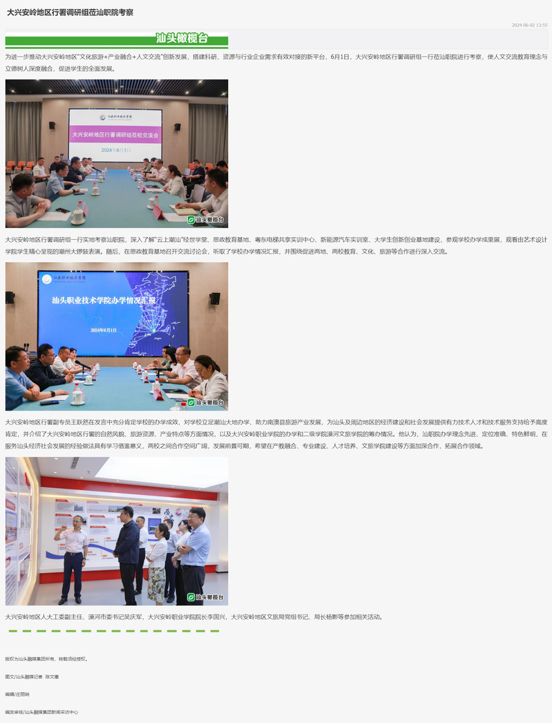 大兴安岭地区行署调研组莅汕职院考察
