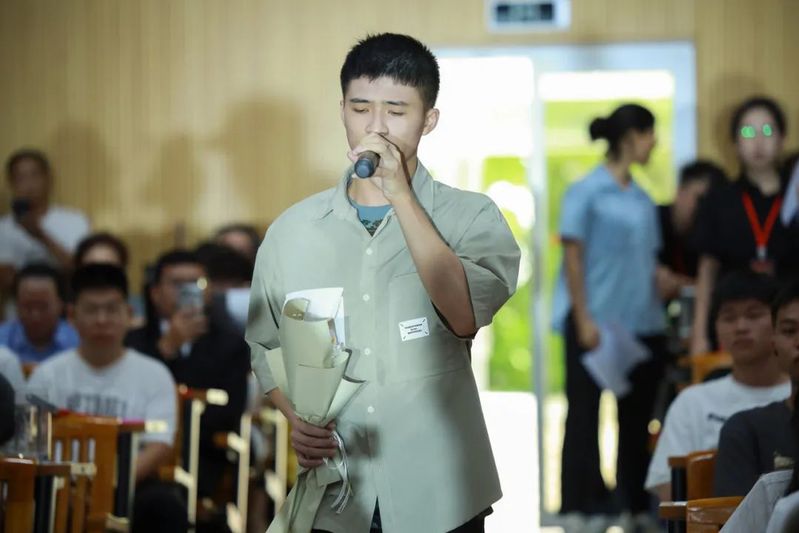 优秀毕业生代表、电子信息学院学生何浩铨发言,感谢辛勤耕耘的老师,感谢求学路上一路陪伴的同学,表示会一直保持一颗谦逊的心,坚守自己的道德底线,珍惜身边的人和事,用智慧和勇气书写属于自己的精彩人生,为祖国的繁荣和发展贡献自己的力量。