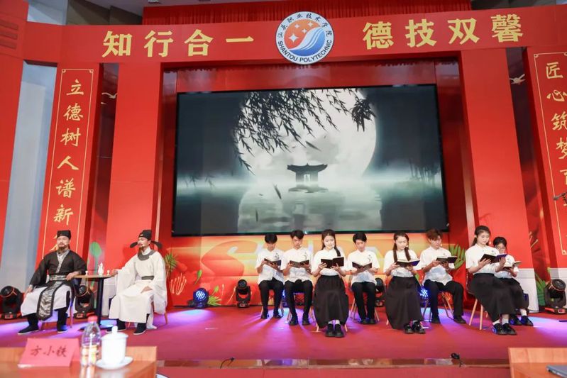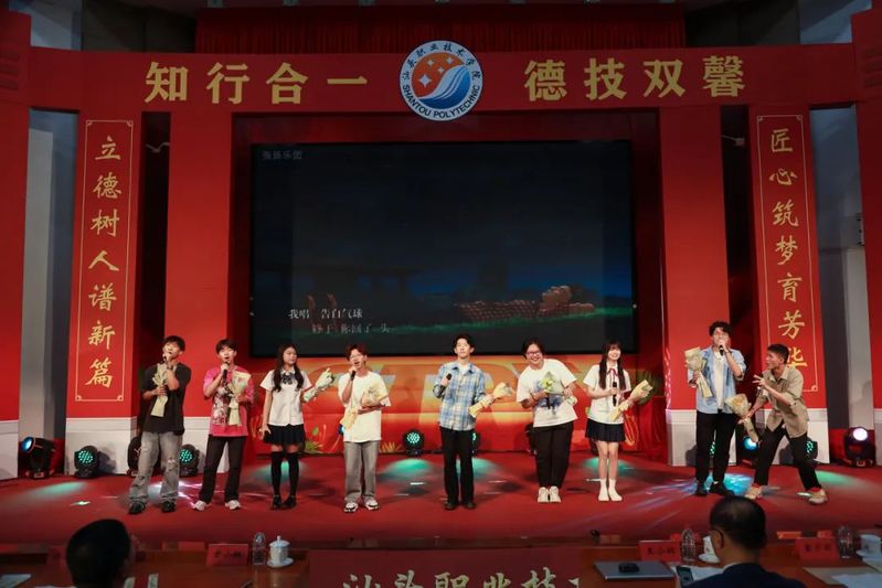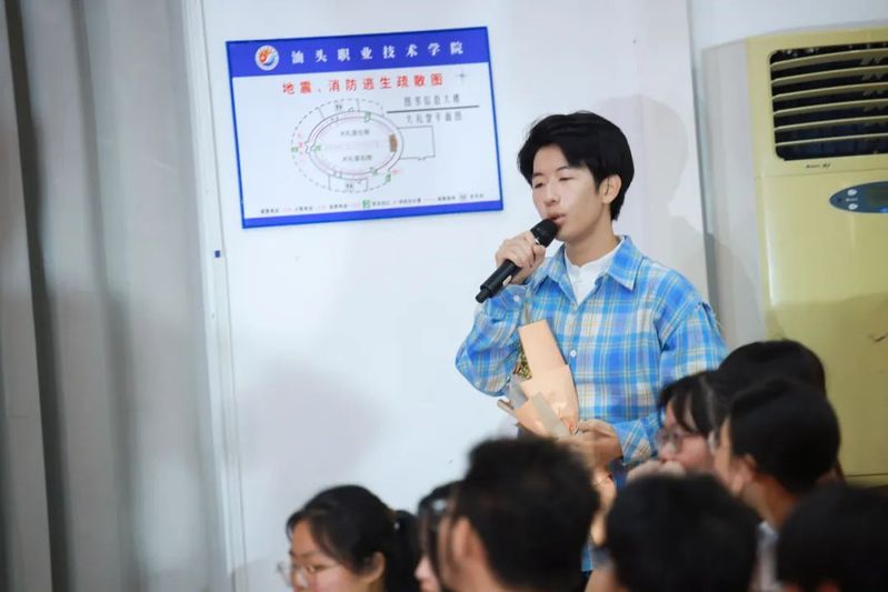 校友代表、94届财会专业毕业生、中国农业银行汕头达濠支行行长、高级国际财务管理师汤锐铓做分享发言。现场,他为师生分享了自己写的小诗《春晨,我在草丛里散步》《实习》《英雄》《白云的快乐》,作为自己毕业三十年来各个阶段的小结,对学校栽培表示感恩,表示将更多地关注母校发展并参与其中,倡议全体毕业生要懂得感恩,回馈社会和母校。