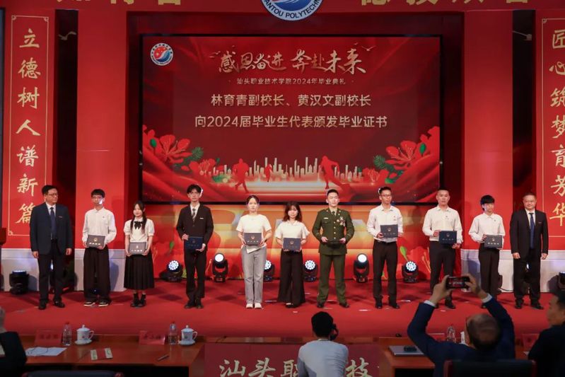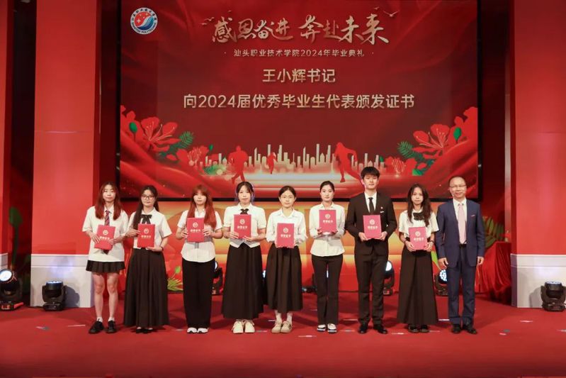 毕业典礼上,王小辉书记为优秀毕业生代表颁发证书。林育青副校长、黄汉文副校长为毕业生代表颁发证书。