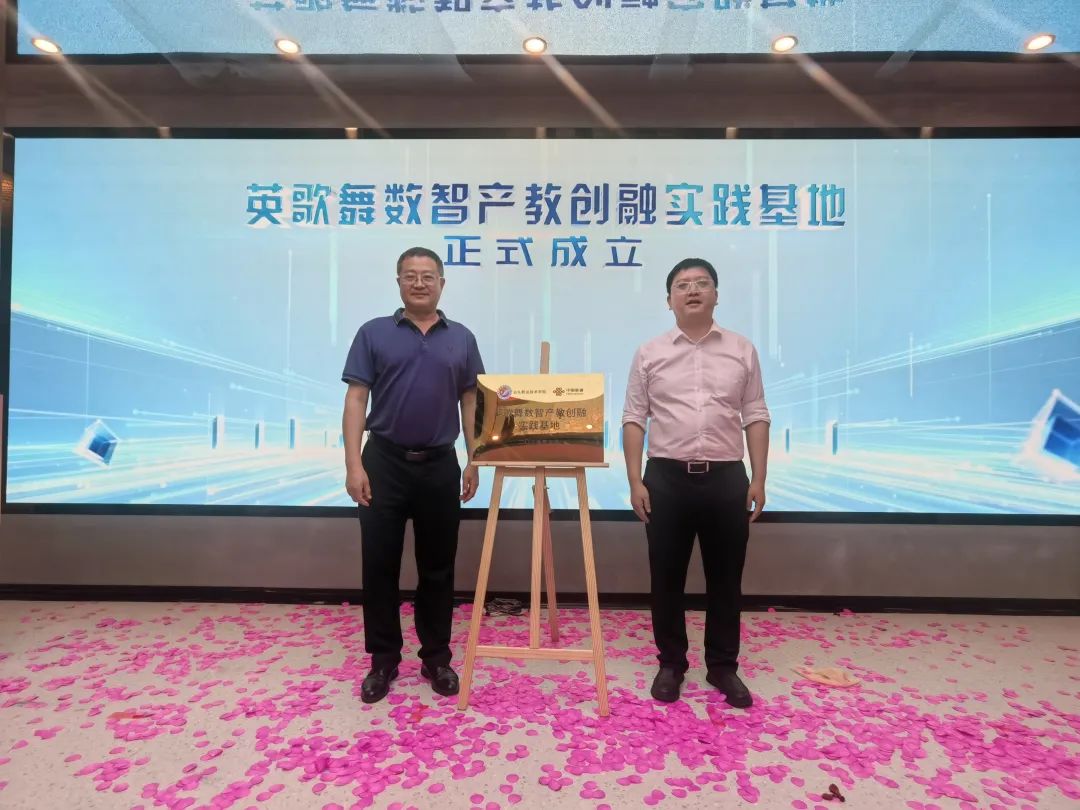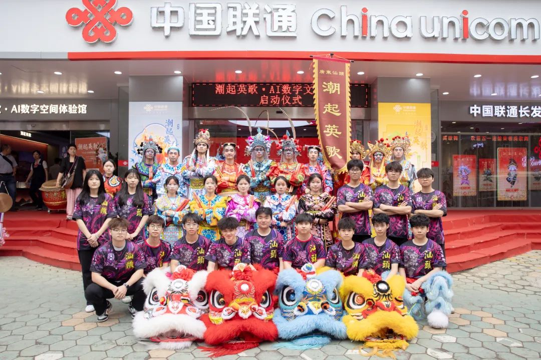 仪式上,林育青与中国联通汕头市分公司副总经理张杰共同为“英歌舞数智产教创融实践基地”揭牌,标志着学校在英歌舞传承与发展上迈出了坚实一步。同时,在场嘉宾一同启动中国联通海纳星火数字英歌创作大赛,这不仅彰显了学校在非遗数字化领域的积极探索与创新实践,也体现了学校致力于将英歌舞这一传统非遗文化与现代科技深度融合的努力。