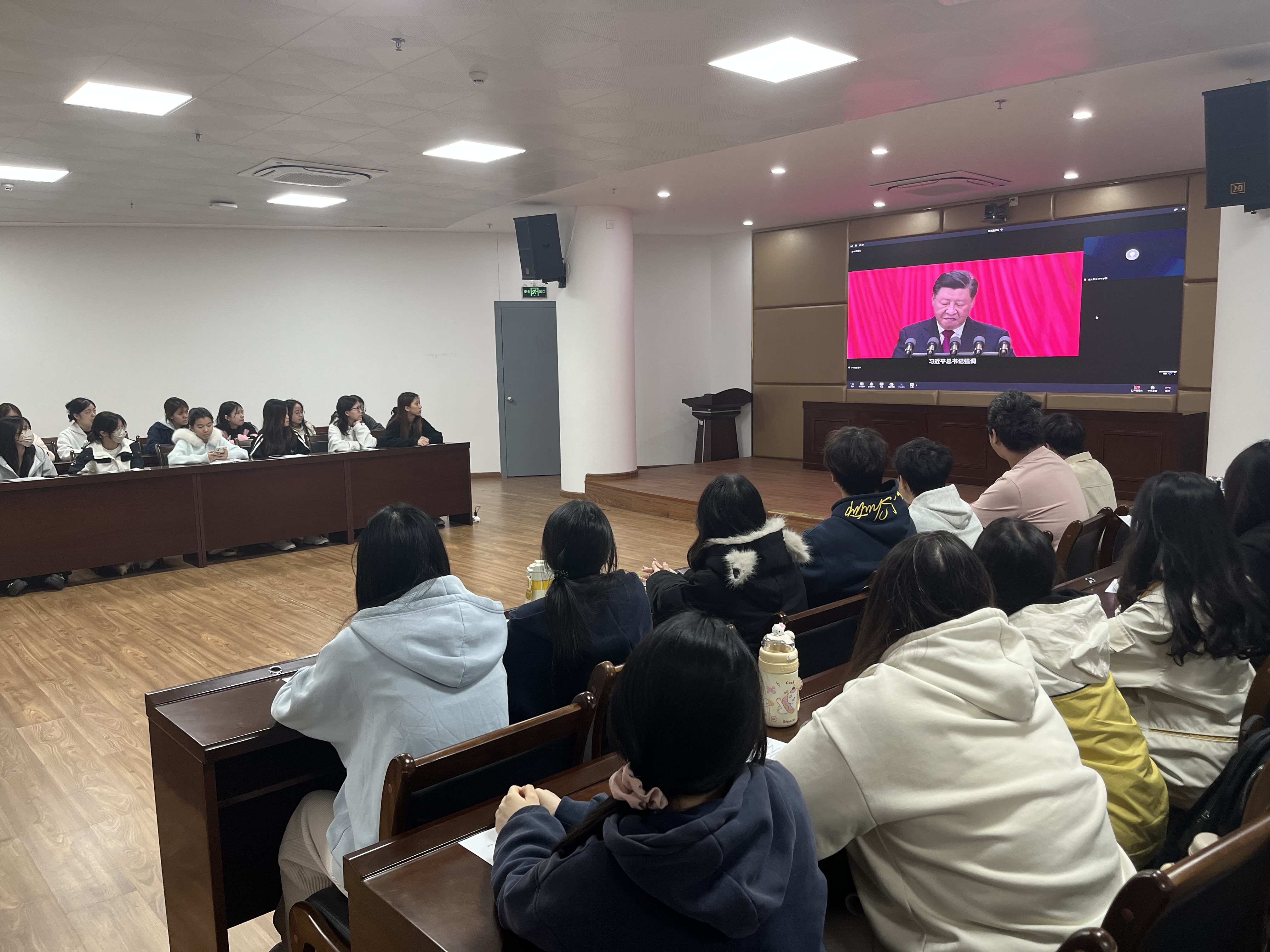 学校在本部校区图书信息大楼一号会议室与金园校区会议室同步设立分会场,应用外语学院、建设生态学院近百名师生代表现场参与。随着北京主会场信号接入,师生们共同见证升旗仪式,齐声诵读宪法条文,合唱《宪法伴我们成长》,认真收看第十届全国学生“学宪法讲宪法”比赛获奖名单宣布、优秀作品展演及教育部领导讲话等环节,在庄重仪式中感受宪法权威。除集中收看外,各二级学院也结合实际,积极组织师生通过网络平台同步收看直播,并跟随直播开展宪法跟读,推动宪法学习全覆盖。