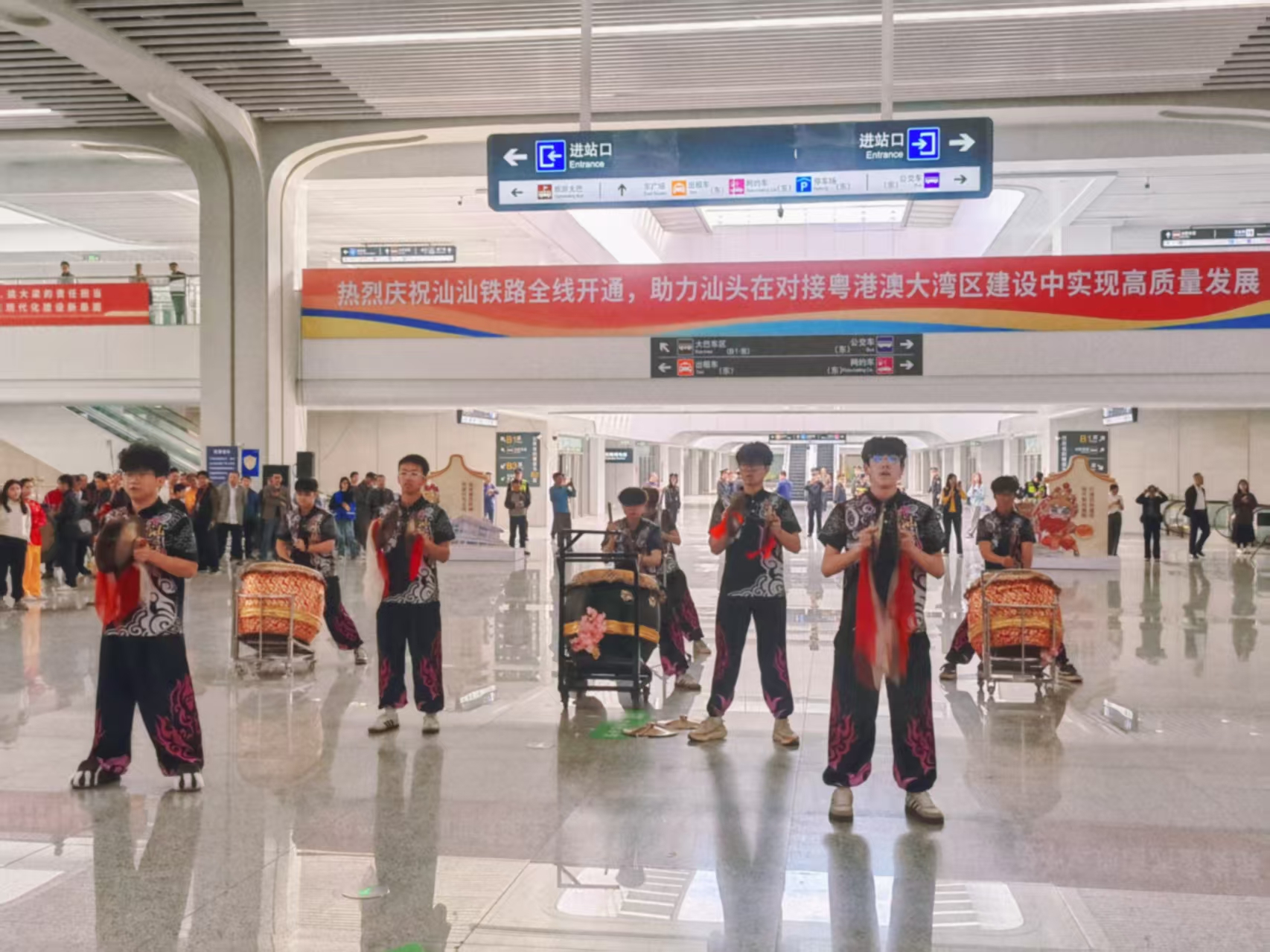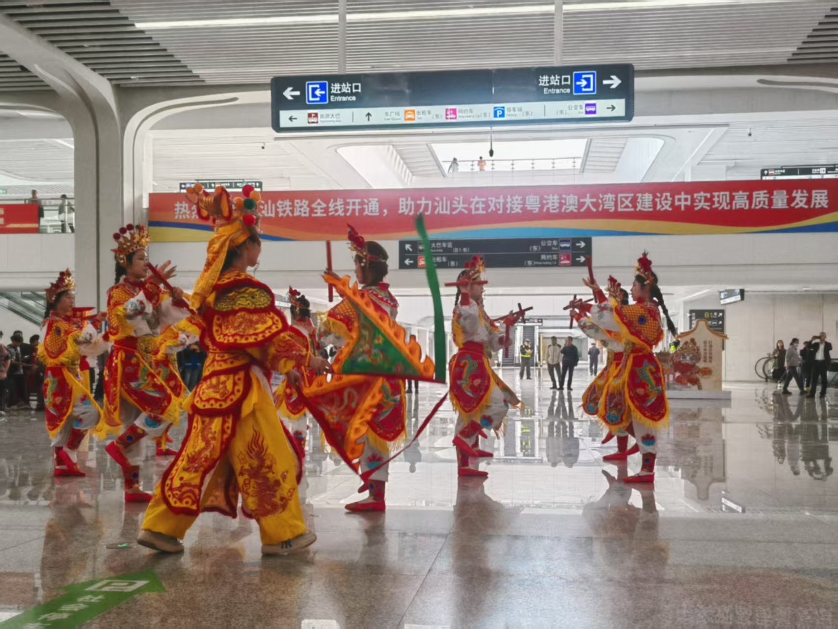 为积极响应“双百行动”号召,助力汕头文化旅游高质量发展,12月22日,学校龙狮队与舞蹈表演专业女子英歌队,协助南澳县文化广电旅游体育局,在汕头高铁站参与“粤享暖冬 至汕好礼”文旅消费季宣推活动文艺展演。当日,汕汕高铁汕头至汕头南段正式通车,深圳往返汕头最快1小时39分、广州往返汕头最快1小时50分,大幅缩短粤港澳大湾区与粤东地区的时空距离,为汕头文旅产业发展注入新动能。此次恰逢特殊节点的展演备受关注,获汕头橄榄台聚焦报道。