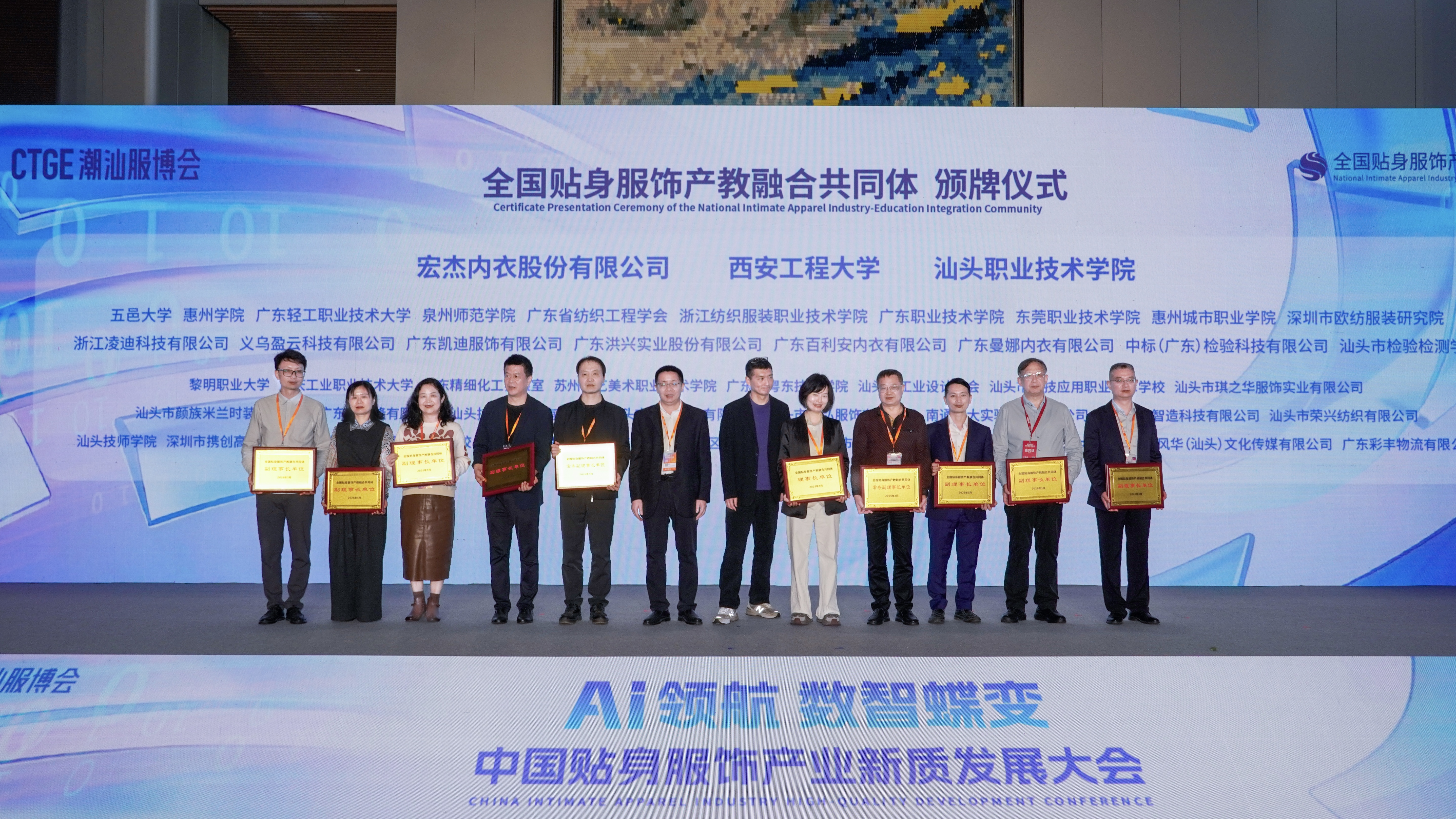 3月18日,全国贴身服饰产教融合共同体(以下简称“共同体”)成立大会暨成员单位授牌仪式在第五届潮汕国际纺织服装博览会期间举行。该共同体由星空彩票了单双四肖、宏杰内衣股份有限公司、西安工程大学联合牵头发起,秘书处常设星空彩票了单双四肖,负责日常运营协调。