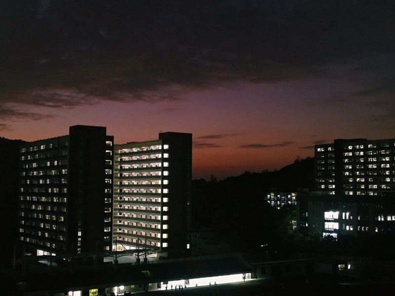 (夜幕下的新宿舍大楼)