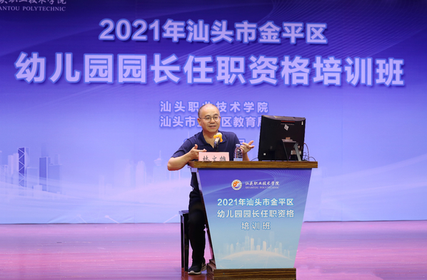 为切实抓好园长队伍建设,受金平区教育局委托,8月3日上午,2021年金平区幼儿园园长任职资格培训班在金园校区学术报告厅顺利开班。金平区教育局林兰副局长、教研室肖留青副主任、学前专干王敦同志、学院成人教育部陈锦德主任、曾瑞海副主任出席本次开班仪式,成人教育部相关人员及参加本次培训班的学员约105人参加了开班仪式。仪式由陈锦德主任主持。