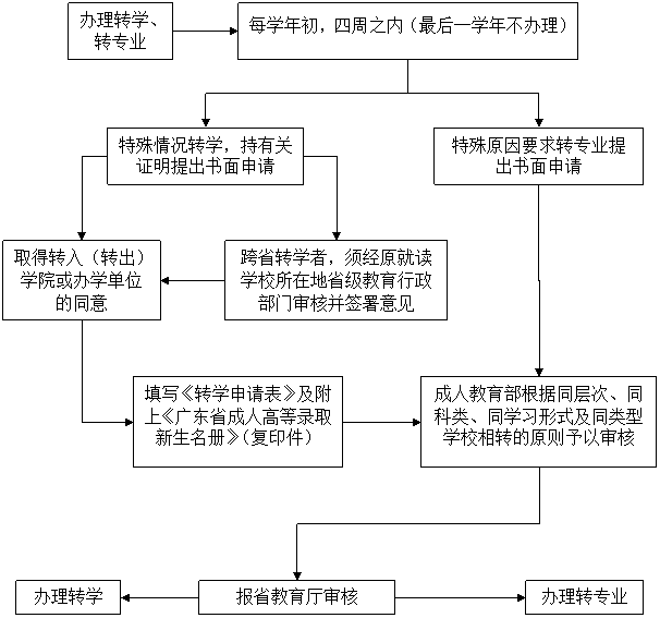 成人高等教育学员转学、转专业流程