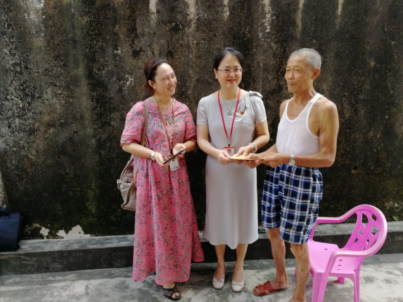 在建党98周年到来之际,2019年7月1日上午,工会与妇委会党支部在支部书记郭永英同志带领下前往我市“百村示范,千村整治”示范点——濠江区滨海街道东陇社区,看望慰问党龄超50年的87岁高龄老党员谢红晶、特困户林娇兰和低保户谢纪平,为他们送去慰问金,表达党和政府的温暖和关怀,并致以节日的问候和祝福。