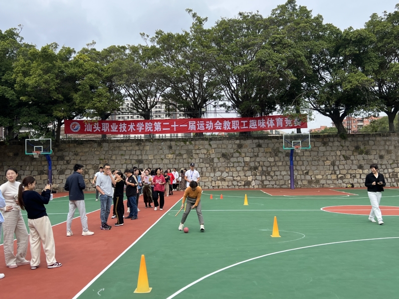 学生运动会开展的同时,由学校工会牵头举办主题为运动健康、奔向快乐的“教职工趣味体育竞赛”也在篮球场如火如荼地进行。比赛项目丰富多彩:投篮、赶“猪”入栏、夹乒乓球跑、超人、钓“鱼”跑、沙包神投手。每一个比赛项目既能让教师们放松身心、增强体质,更是团结协作、体育竞技的完美比拼。
