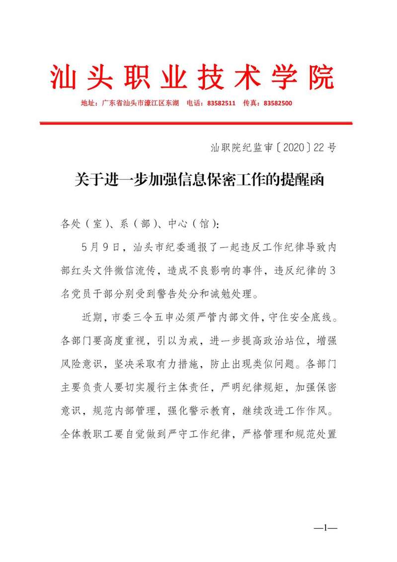 关于进一步加强信息保密工作的提醒函