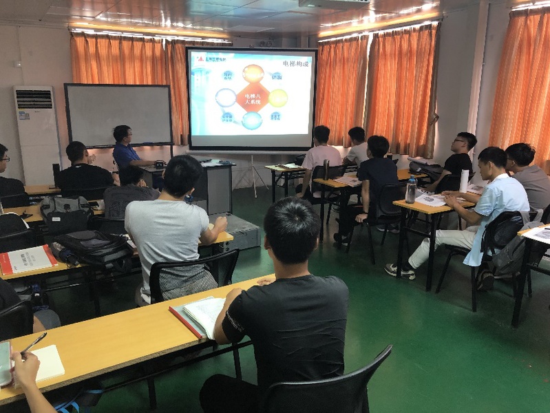 为了保证培训的质量,本次培训将32名学员分成两期(班),并由唐晓晖校长、吴伟旗老师和肖结洪老师轮流给学员进行授课。本次电梯维保培训的主要内容有: