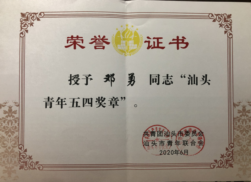 邓勇老师是我系自动化教研室的一名专任老师,他多年来科研业绩成果累累,带领学生参加“挑战杯”赛事,多次获得国家、省级一等奖,特等奖,为表彰选进,学院团委今年推荐他为汕头市青年五四奖章候选人,2020年6月,机电工程系邓勇老师荣获“汕头市青年五四奖章”。