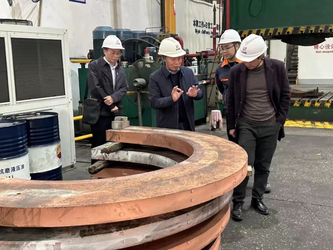 首先,由汕头华兴冶金设备股份有限公司总经理李立鸿带队,常务副总经理姚伟鹏、生产部部长黄松青、人资部部长林本祥、办公室主任张学陪同参观企业的生产车间,并由总经理李立鸿详细介绍了公司的产品、生产加工工艺及其国家专利技术。