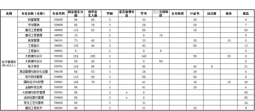 经济管理系2021年拟招生专业