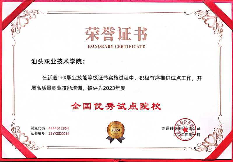 近日,由教育部指定的第三方培训评价组织——新道科技股份有限公司公布了2023年全国试点工作优秀单位及先进个人的获奖名单,我校荣获2023年度“业财一体信息化应用”职业技能等级证书全国优秀试点院校称号,财经商贸学院李乐平老师荣获全国优秀指导教师。