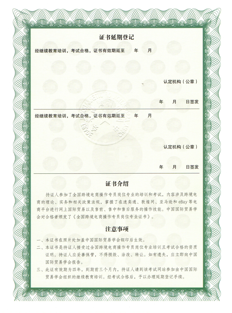 全国跨境电商操作专员是以电子技术为手段,具备在互联网平台上进行外贸网络营销的基本技能,在线完成产品的发布、询盘、定价、运输、支付、交付、纠纷处理,更好的开展跨境电子商务,提升企业经济效益。适用于国际贸易实务、商务英语、物流管理、报关与国际货运代理、电子商务、市场营销、计算机应用等专业。适用的就业方向有各类电子商务企业B2B、B2C、C2C商业模式、各类第三方跨境电商平台及企业垂直型网站的产品信息管理、销售管理、客户管理、网站优化管理。